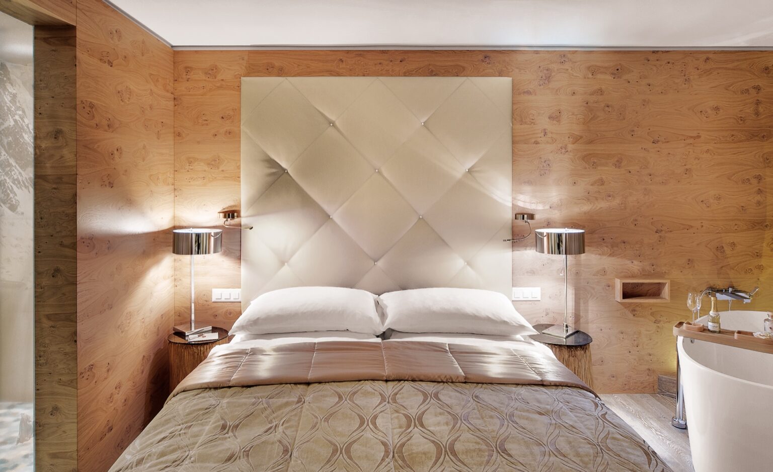 In the suites, every guest is guaranteed to be on cloud nine. Boasting a separate sleeping and living area, they extend over an average surface area of a regal 50 square metres. Guests can admire the mountain scenery in private on their balcony or terrace. Inside, high-quality fabrics and selected natural materials are the order of the day. The more compact, south-facing small suite has an area of only 32 square metres, but it is cheaper (with or without balcony).