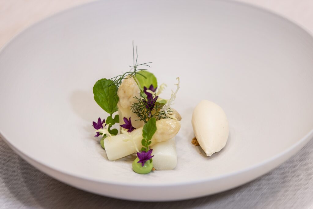 Want to cook like a 2-star chef? Not possible? You can! At least in a slightly modified form with our recipe of the month from our Ecco chef Rolf Fliegauf. His seasonal recipe “Asparagus salad with iced hollandaise, spring herbs and the beurre blanc of smoked fish” is – like the hollandaise of asparagus – an indispensable part of the Ecco menu during the asparagus season. Fliegauf adds a special touch to the dish with the classic sauce, as it is served iced. Sounds delicious and refreshing, and it is! The complexity and subtlety of Ecco dishes should not be underestimated, so we have summarized the dish for you to recreate in a few simplified steps at home. Have fun trying it out and bon appétit!